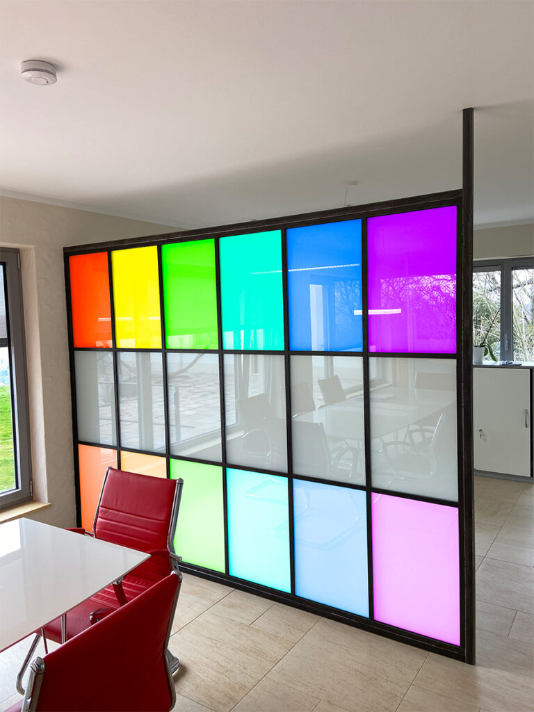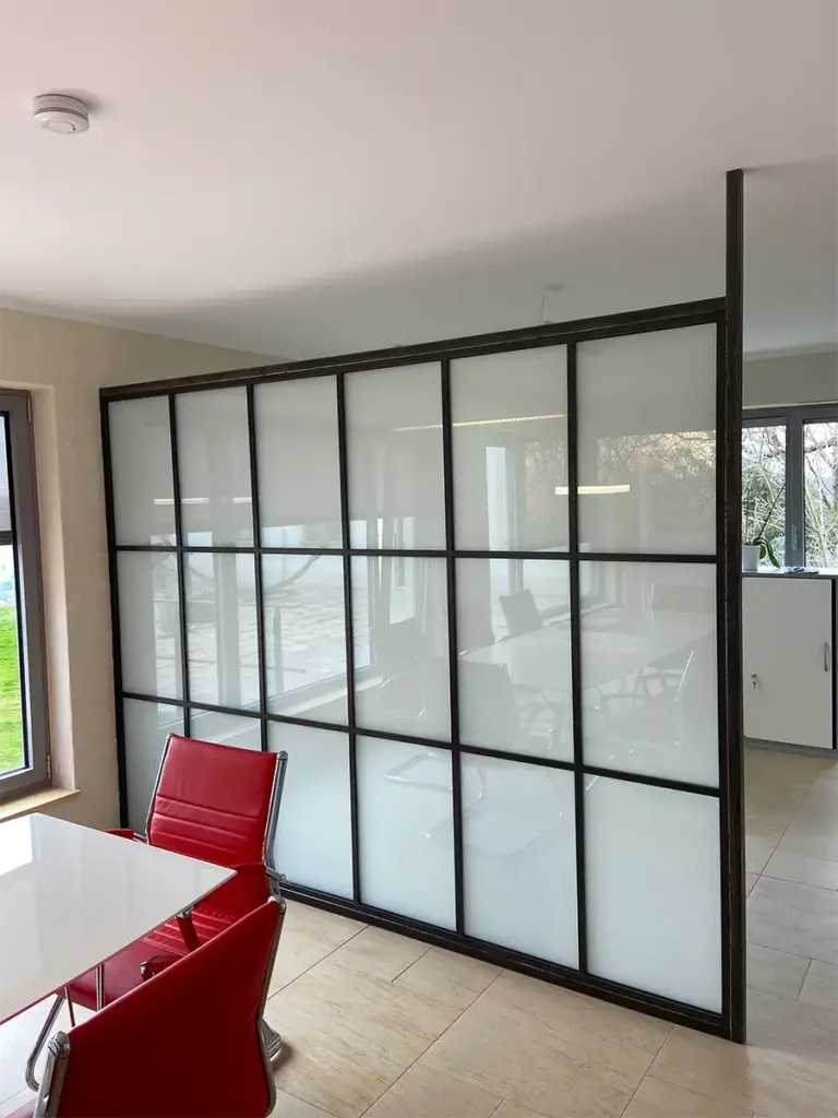 Die „Gardine“ hat ausgedient. Stattdessen entstehen heute individuelle, schaltbare Glasflächen mit integrierten Grafiken, Logos oder Texten – genau nach Ihrem Wunsch.